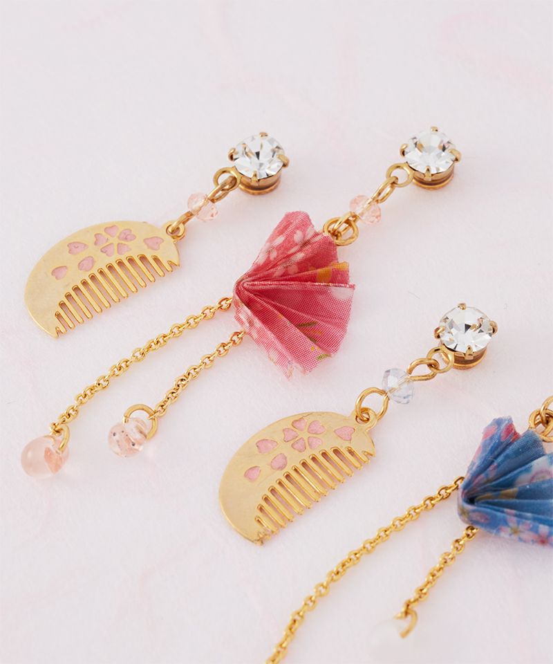 和の美意識を映した「櫛」と折り紙で折られた「扇子」が美しく洗練された印象のアイテムです。