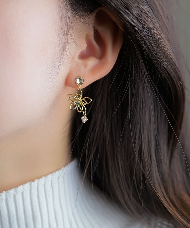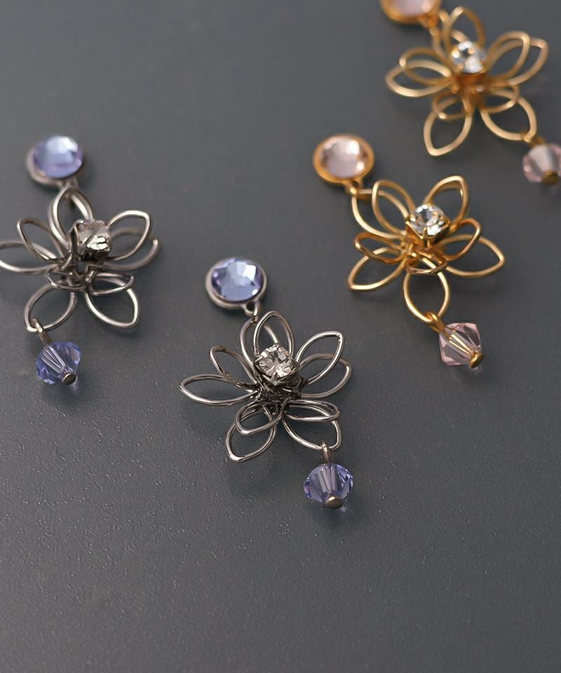 ワイヤーのお花と揺れるビーズがとても良いバランスです。 とっても可愛いです。