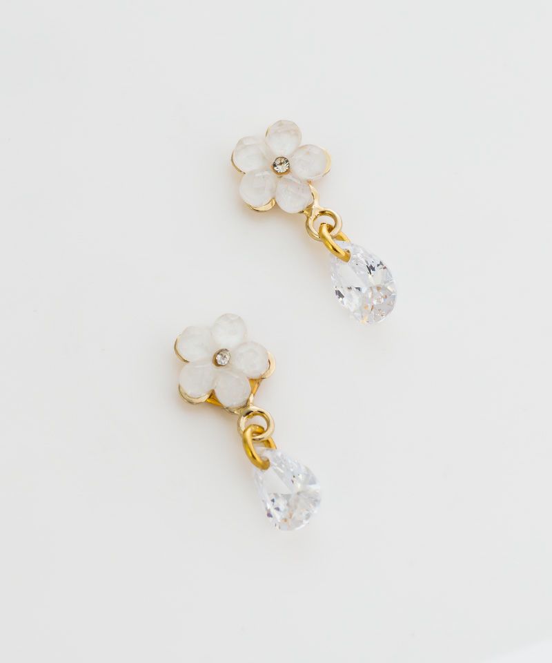 繊細な花の形状と小さく揺れるクリスタルが、爽やかで上品な大人の女性らしさを演出します。