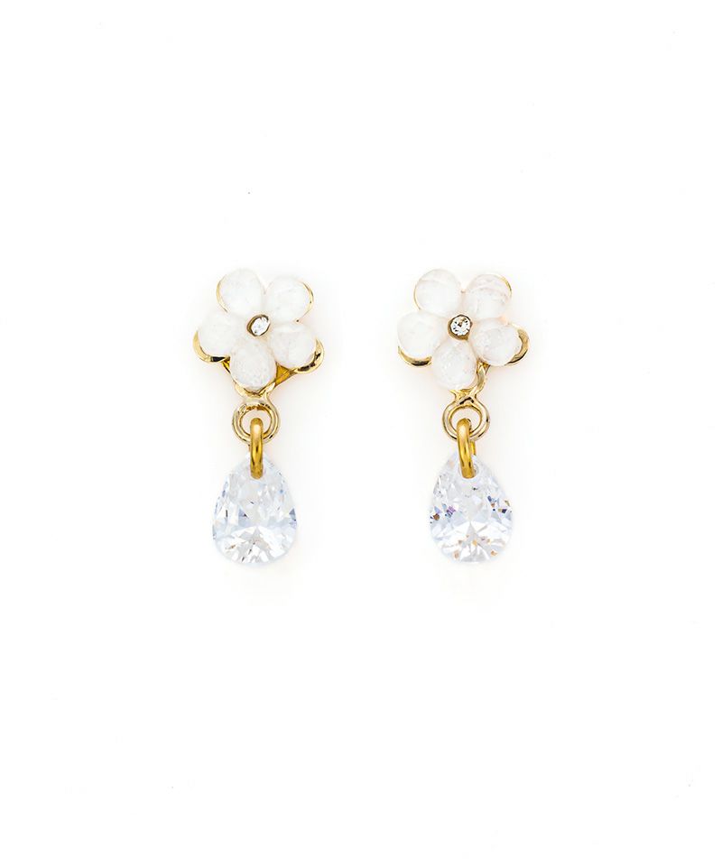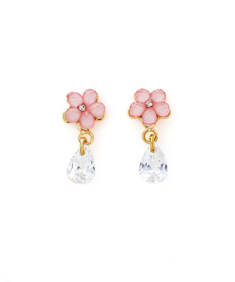 フラワーモチーフとクリスタルのドロップが特徴的なピアス。