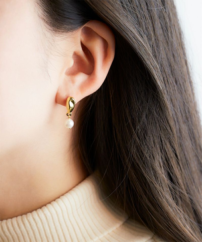 流れるようなデザインのメタルとパールで甘辛な印象のアイテム。