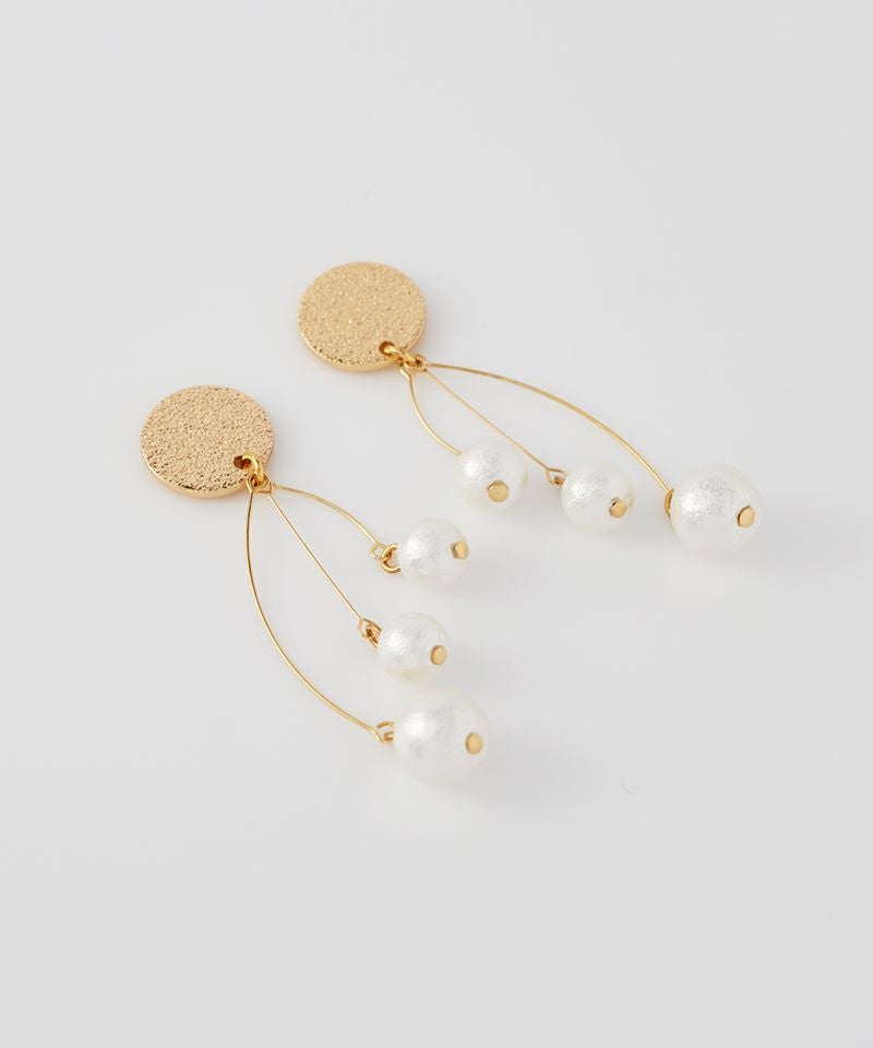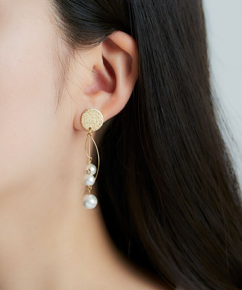 大小3つのパールが軽やかに動いて、顔まわりに華やかさと上品なボリューム感をプラス♪