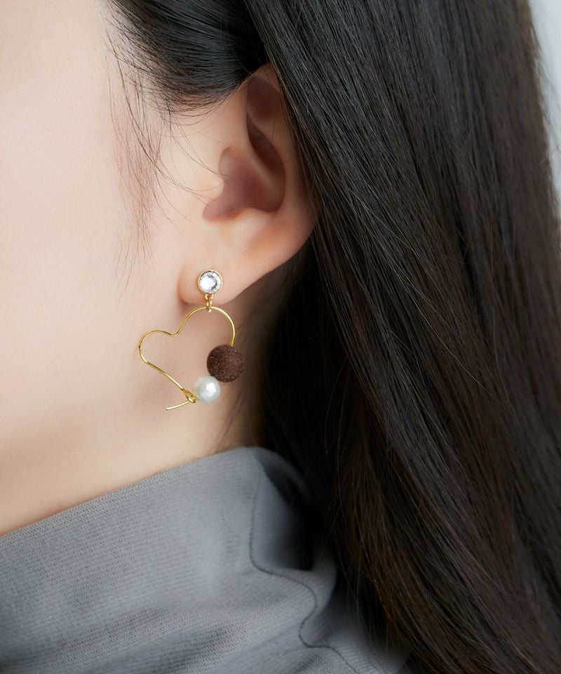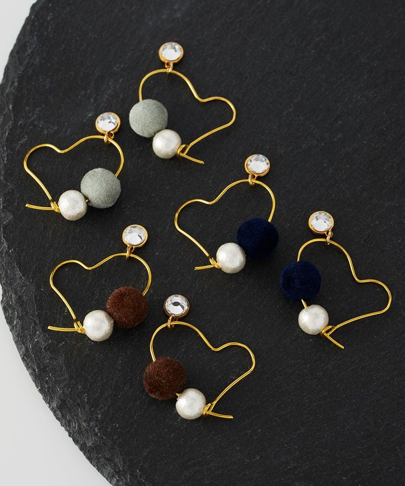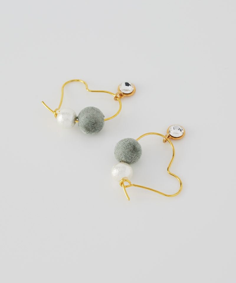 繊細なワイヤーハートに、ふんわりとしたフロッキーボールと上品なコットンパールをあしらったアイテムです♪