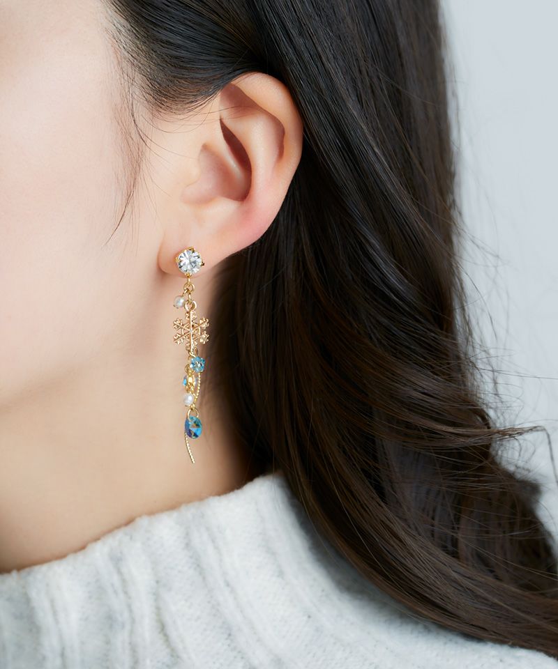 凍りつくような澄んだブルーが耳元を上品に彩り、冬のお出かけコーデにそっと季節感をプラスしてくれます。