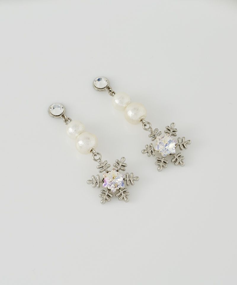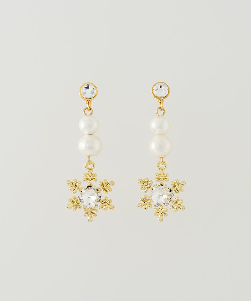 雪の結晶モチーフとパールが耳元で揺れる、冬らしい可愛いピアス☆