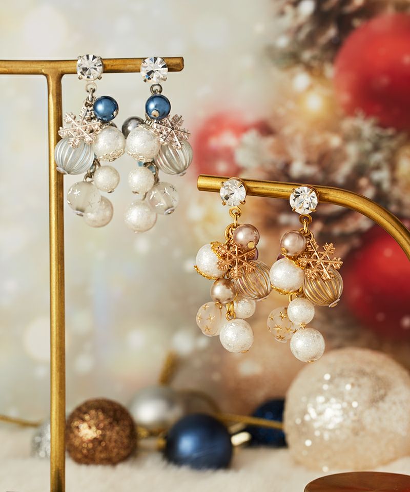 耳元でゆらゆらと輝き、光を受けてきらめくデザインはクリスマスや特別な日のコーデにぴったり♪