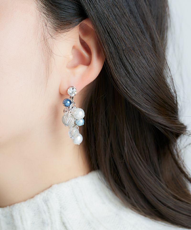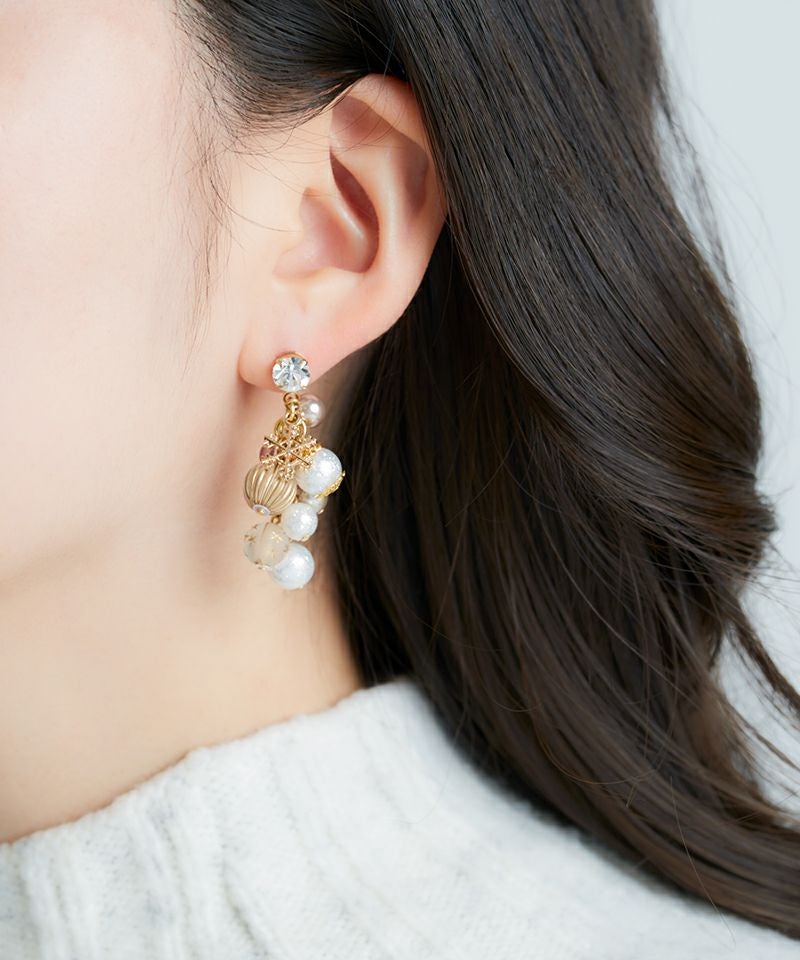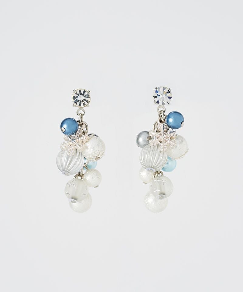 パールや雪模様のビーズがじゃらじゃらと揺れる、華やかな冬ピアス♪