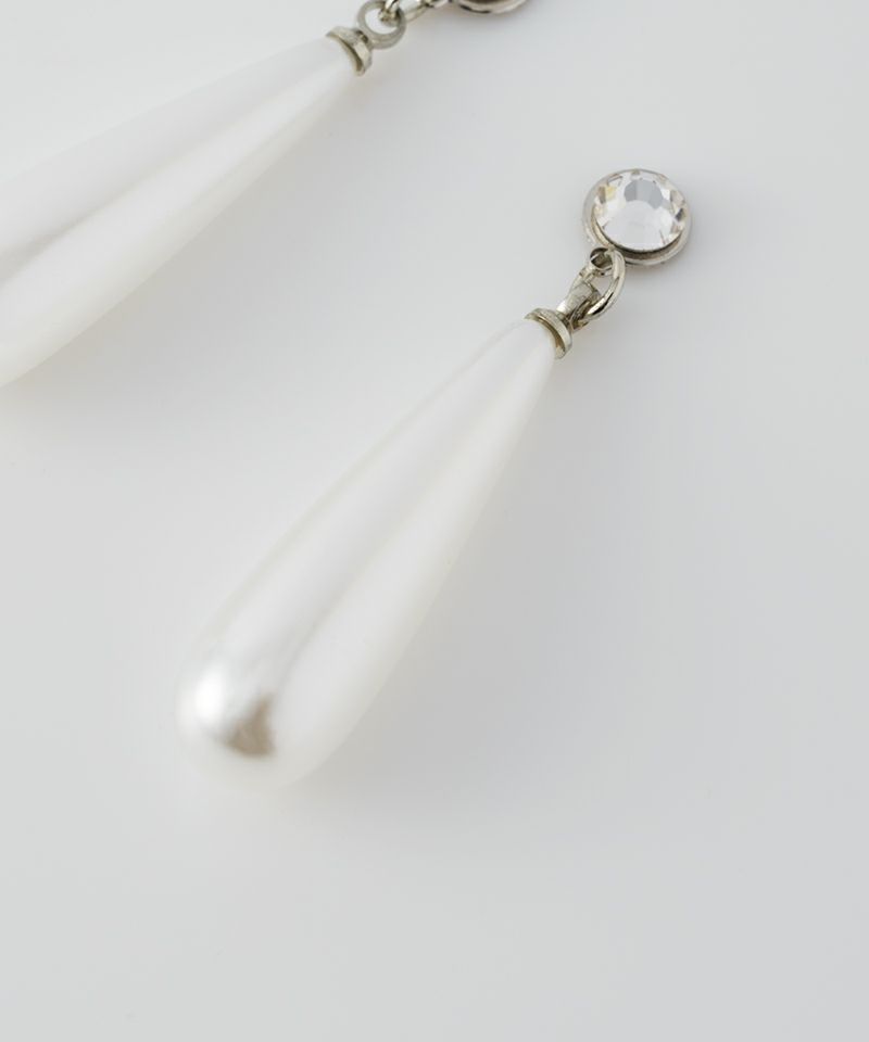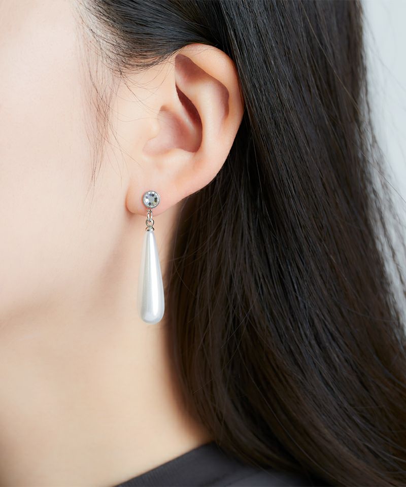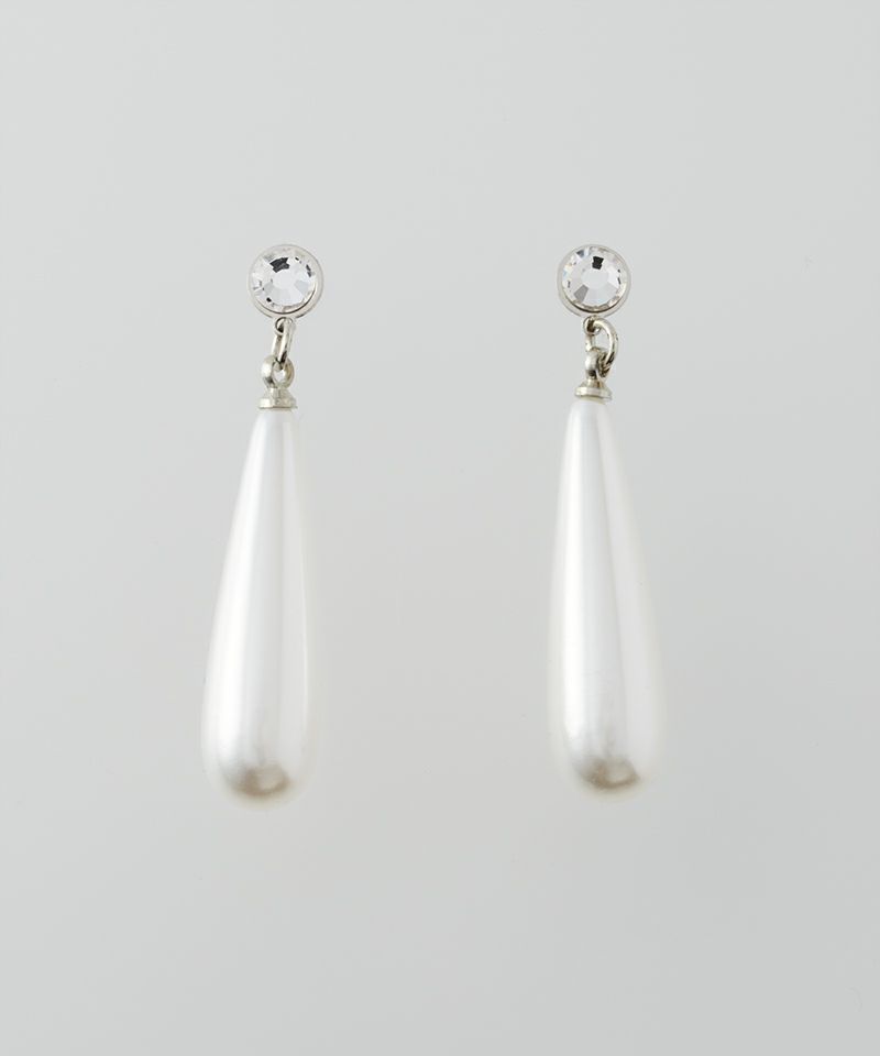 縦に長く伸びる雫型パールが、耳元にすっきりとした上品なラインを描くアイテム。