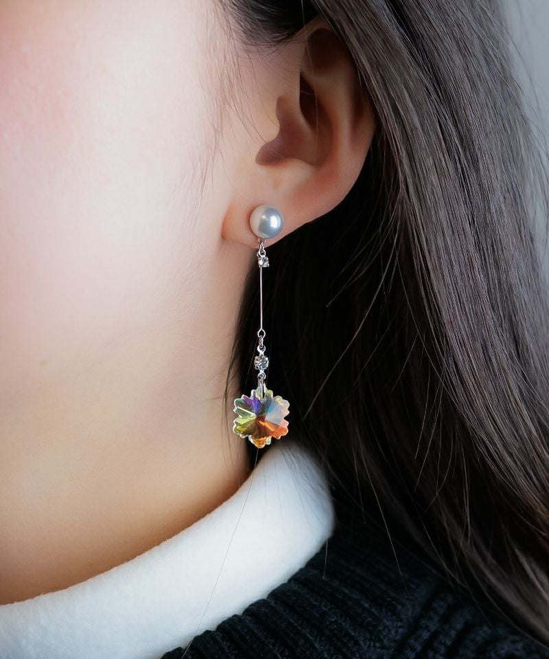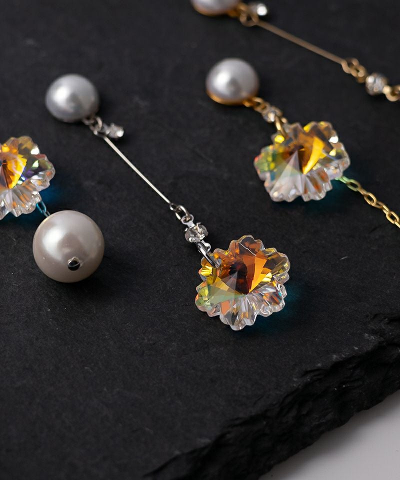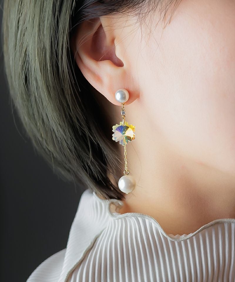大きなクリスタルストーンとパールがエレガントな雰囲気の上品アイテム。