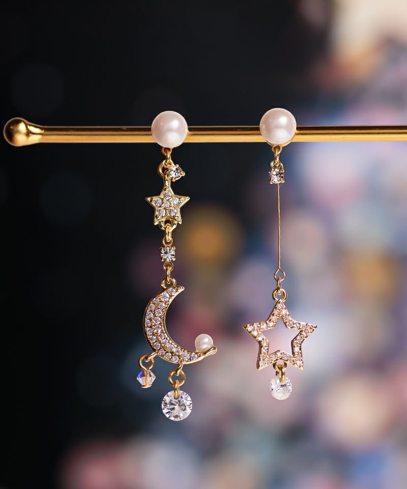 キラキラ輝くスタームーンモチーフのアシメデザイン。