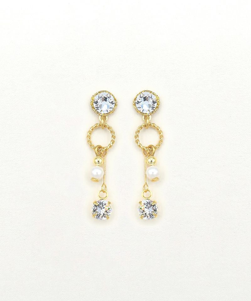 【ノンニッケル】プチパールクリスタルのドロップフープメタル
