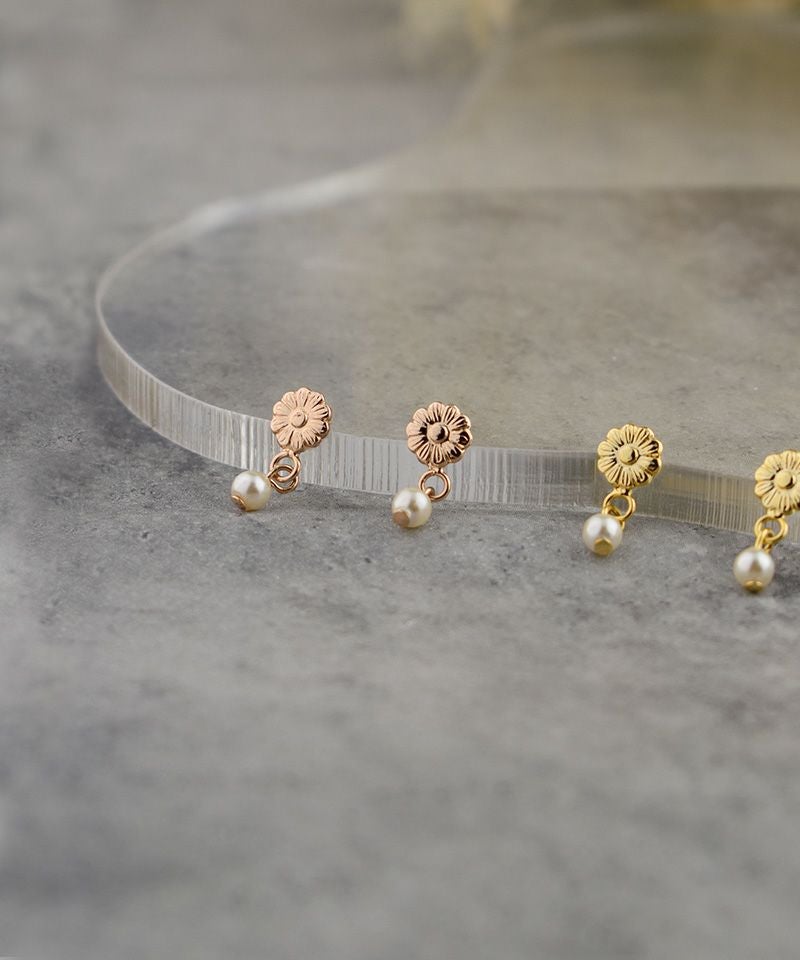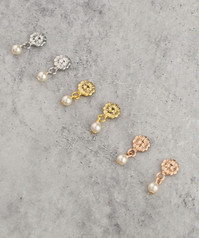 【ノンニッケル】メタルフラワーと揺れパール