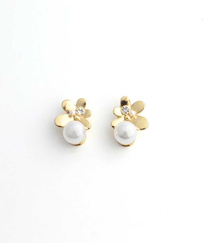【ノンニッケル】一粒パール×ニュアンスメタルフラワー