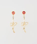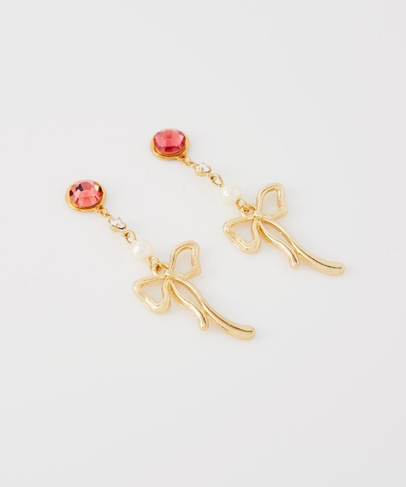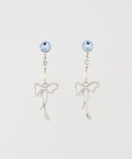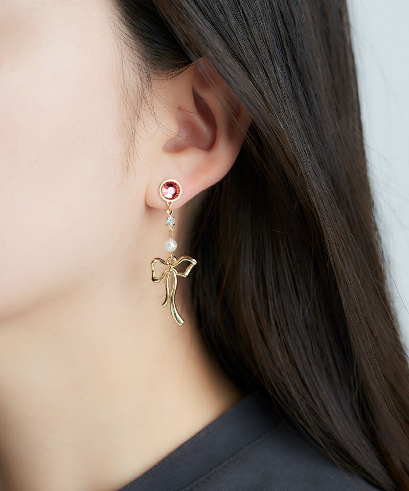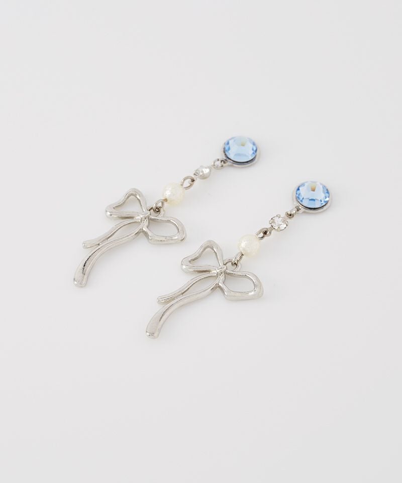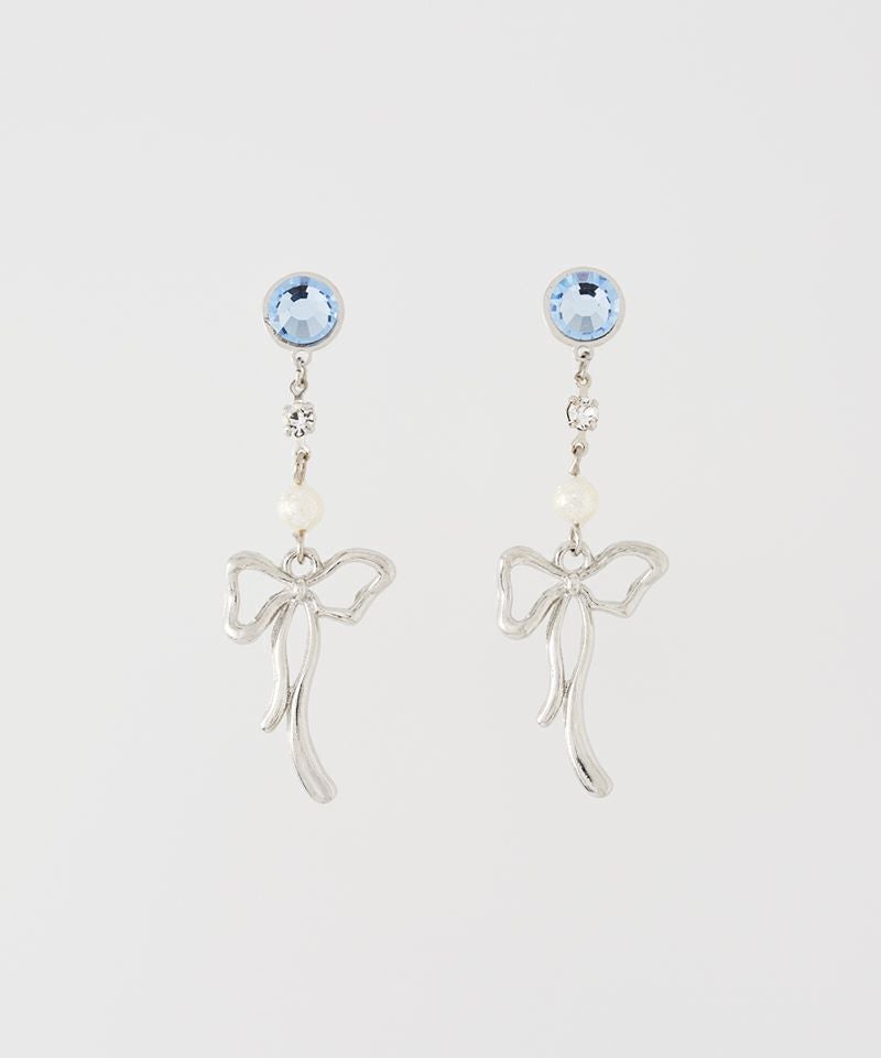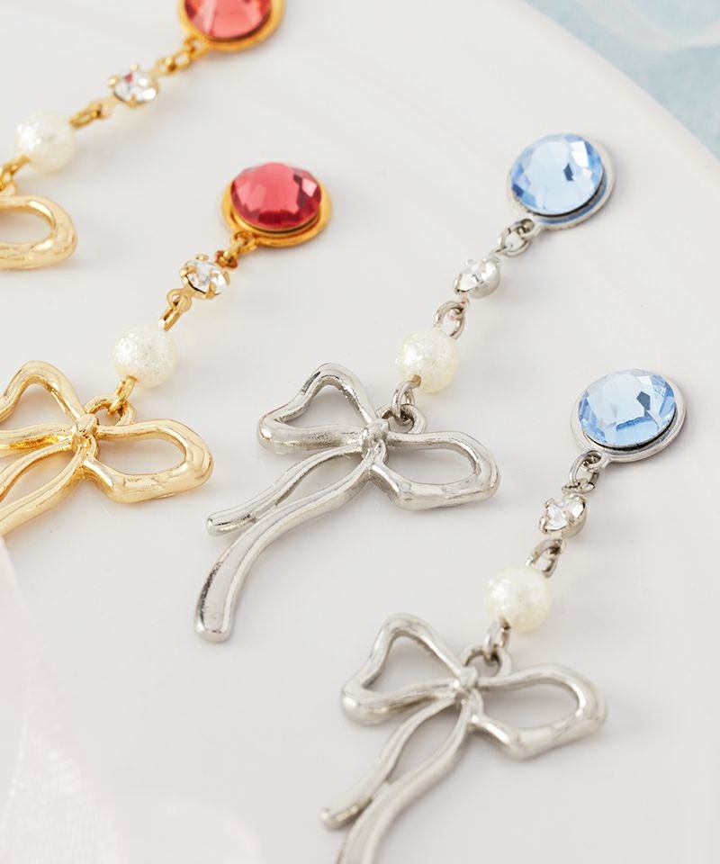 耳元でフラッシュのように煌めくストーンと、揺れるリボンの動きが遊び心と上品さを両立させます。