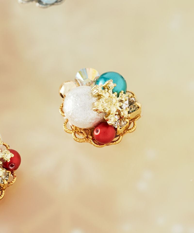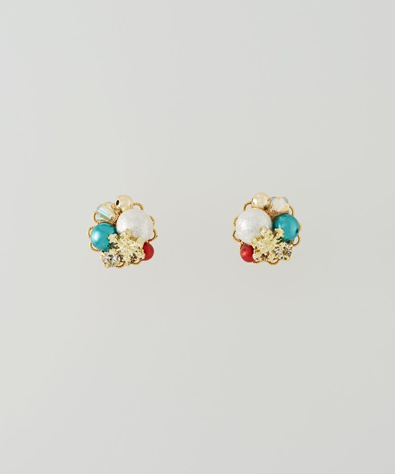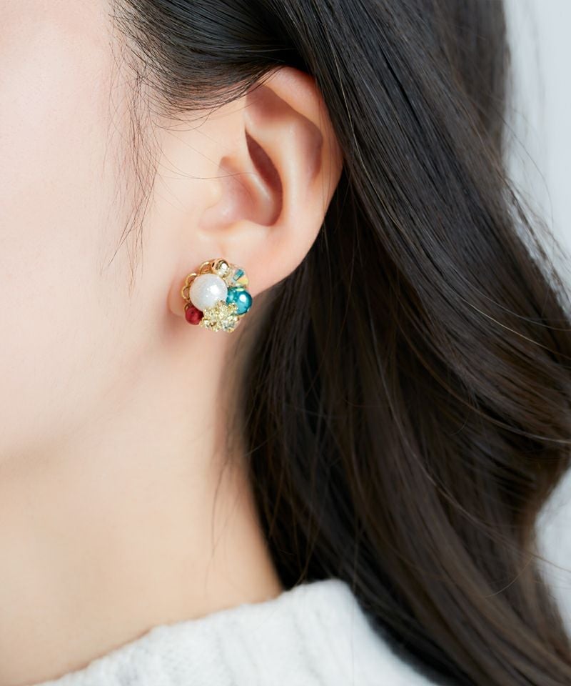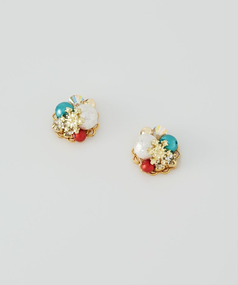 キラキラ瞬くクリスマスの装飾を、ブーケのようにぎゅっと詰め込んだデザインピアス。