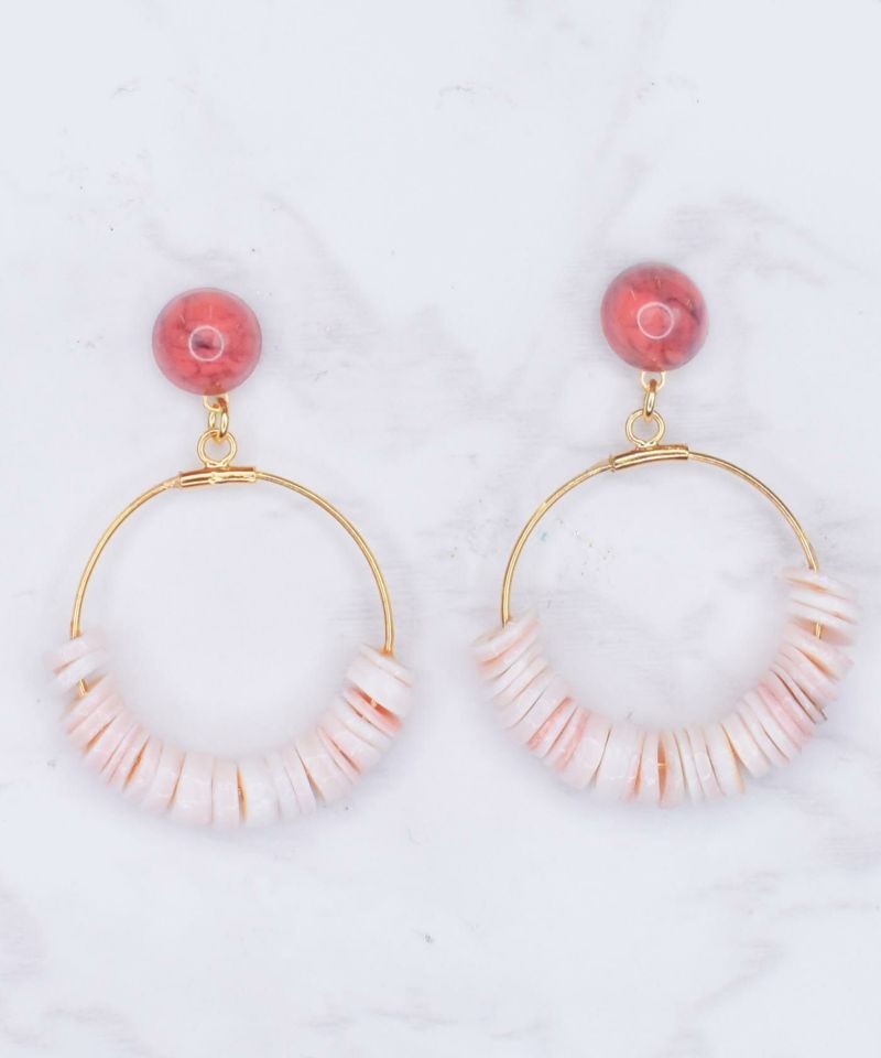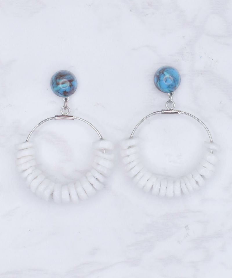 ターコイズブルーと白い貝殻風なデザインで、夏に大活躍しています。ロングカールのヘアスタイルにも、バッチリ映えます。