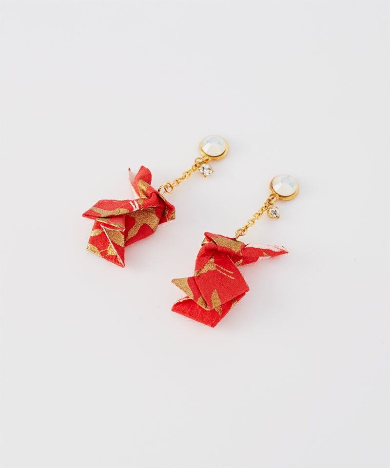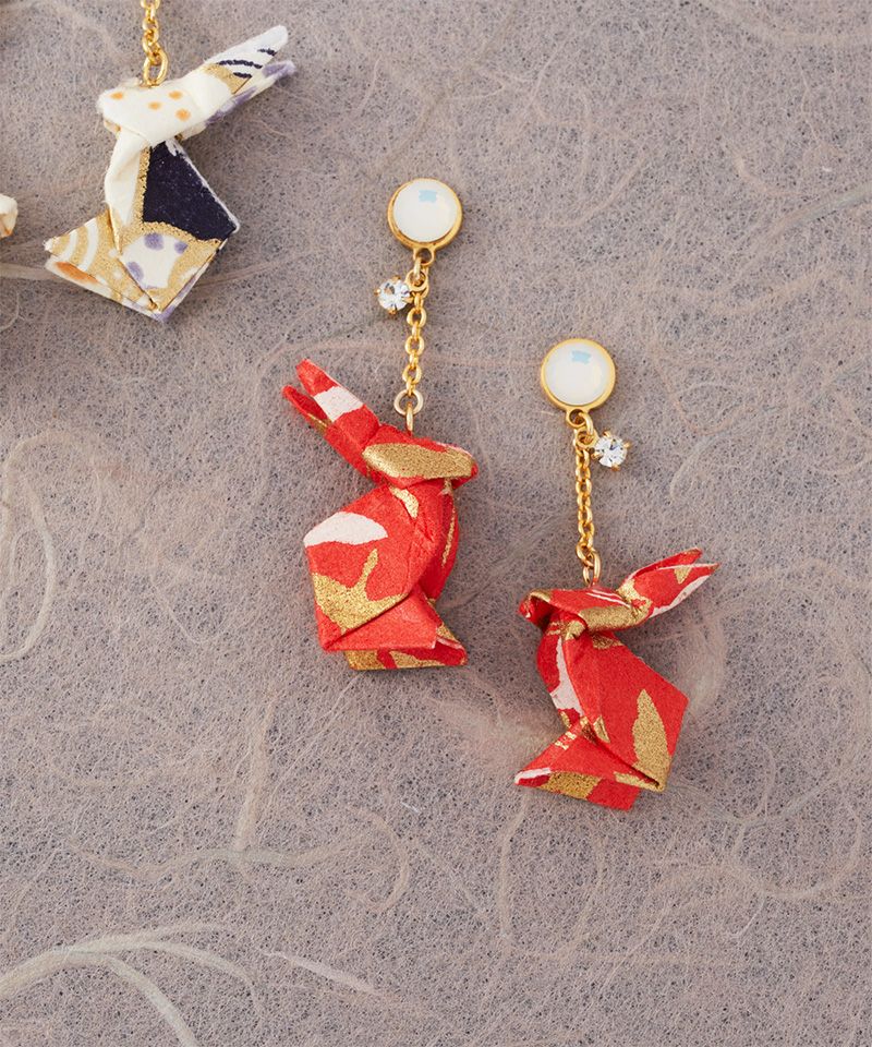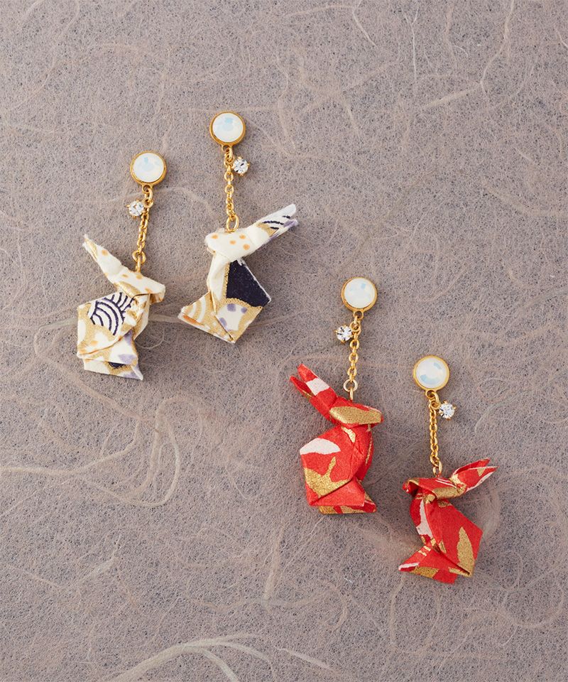 折り紙でできた兎が軽やかに揺れる和風ピアス。