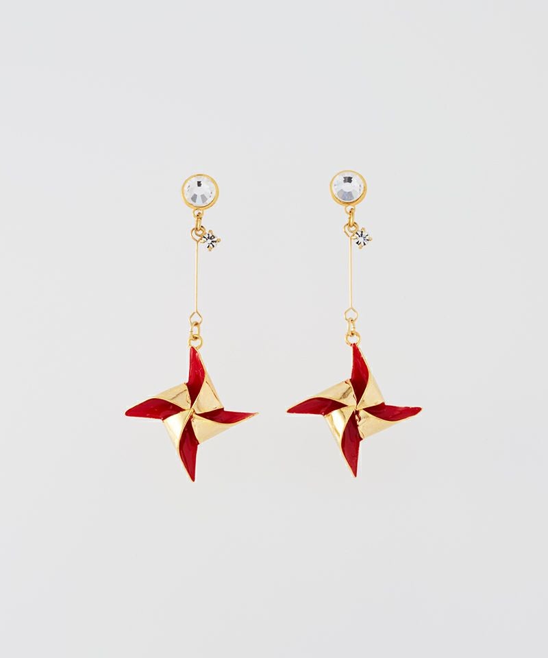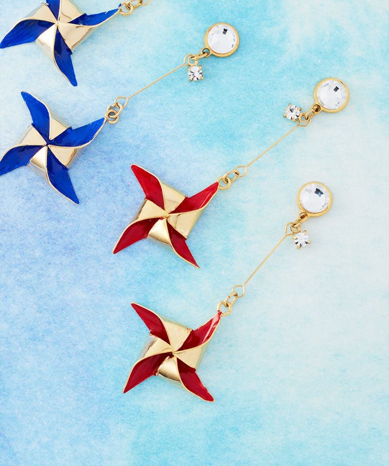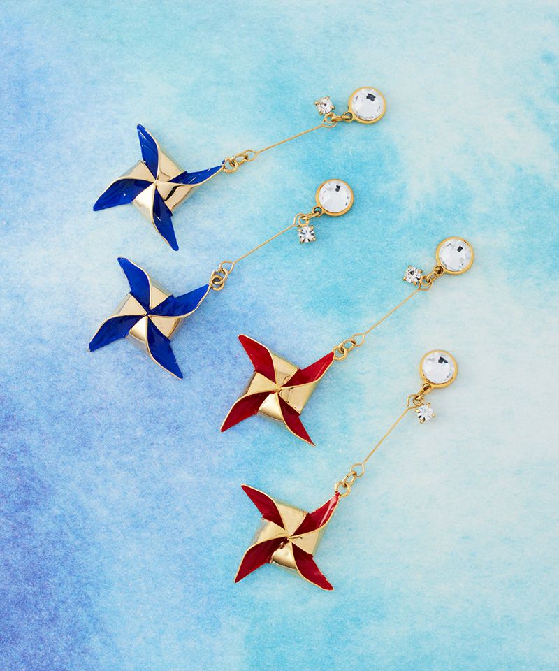 風にくるくると舞うかざぐるまをモチーフにした貼るだけピアス☆