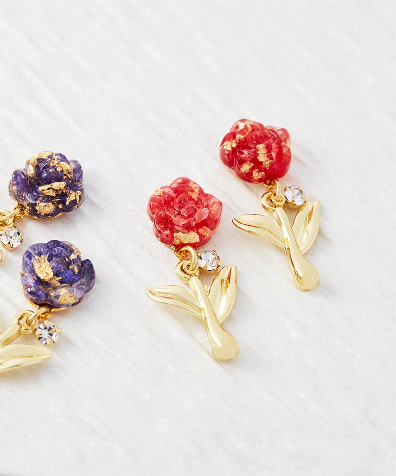 お花の部分がプレートに、茎と葉がチャームになった珍しいデザインのアイテムです。