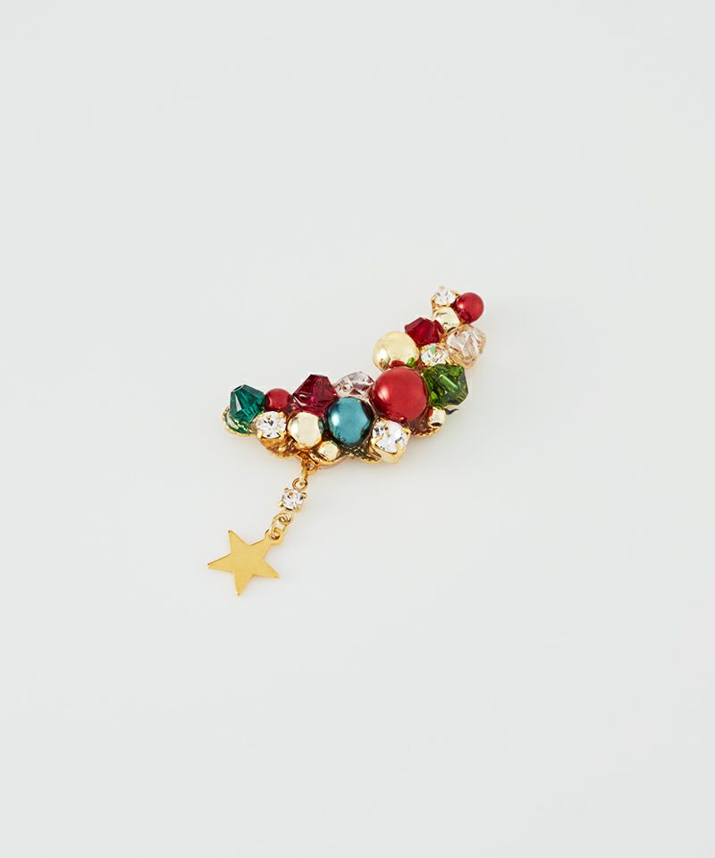 赤と緑を基調にしたビーズとストーンがきらめき、三日月からは小さな星がゆらりと揺れます☆