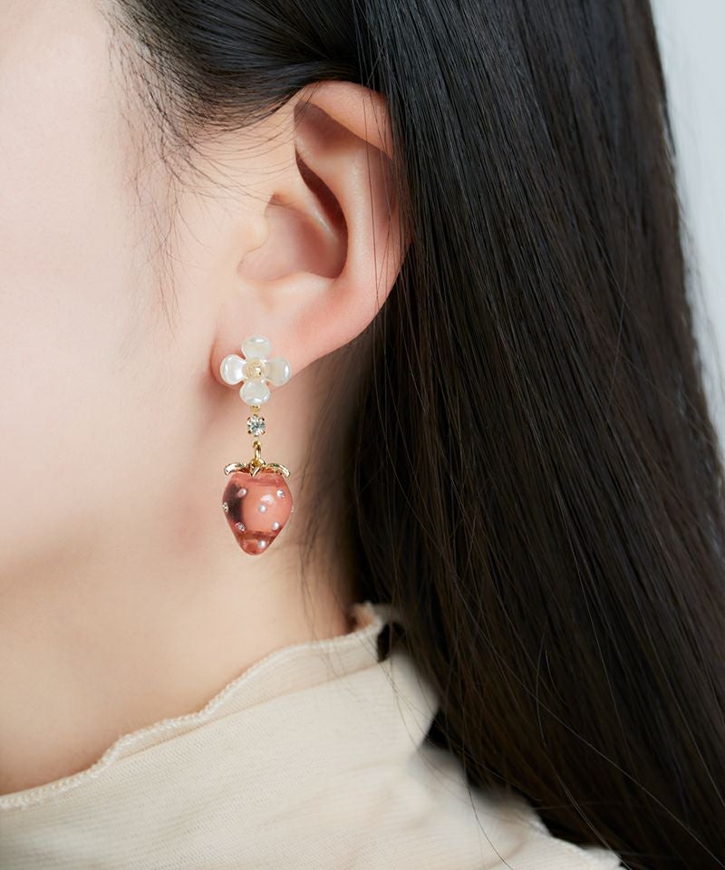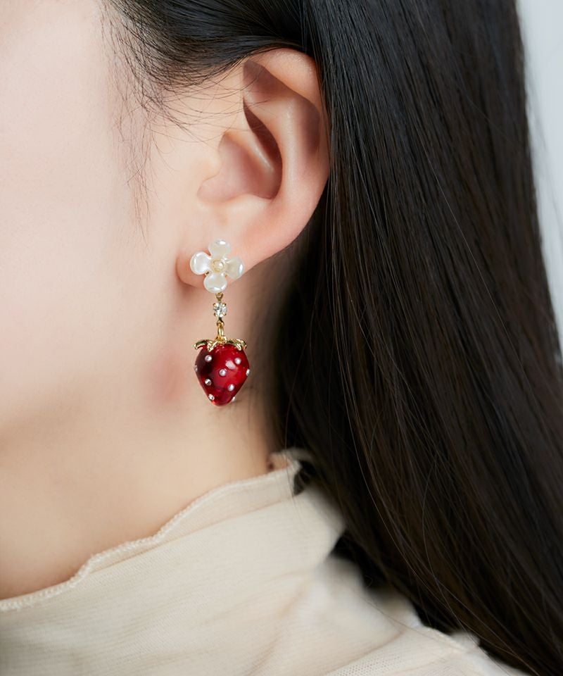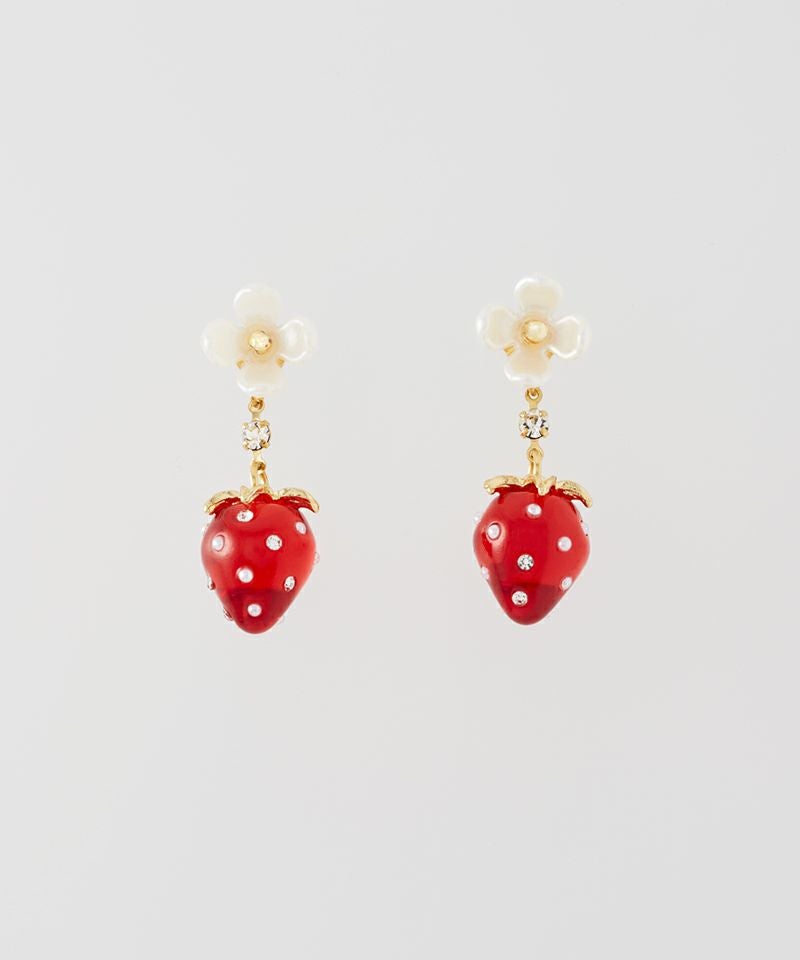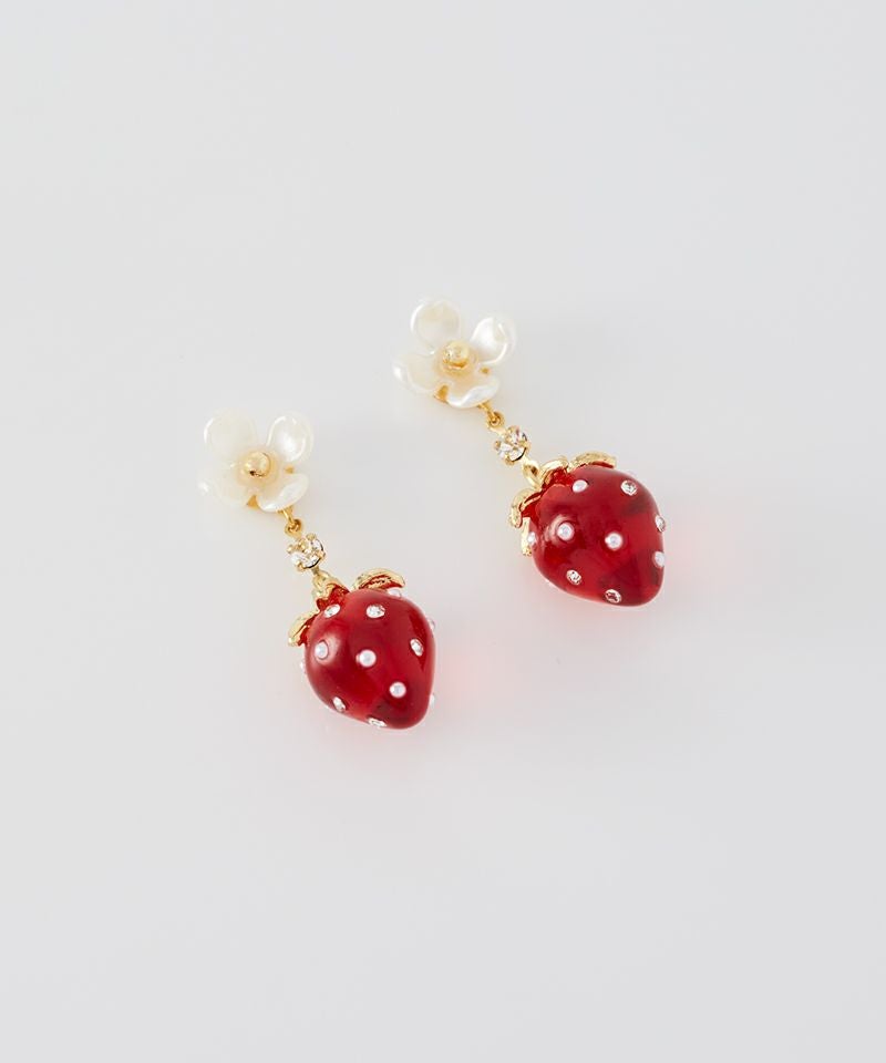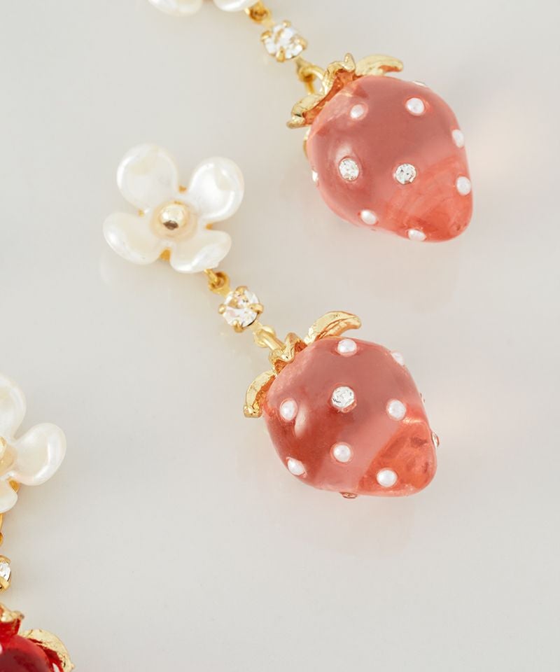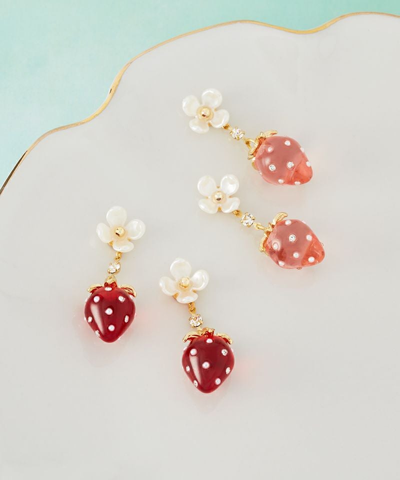 ころんとした立体感のあるいちごに、繊細なドットディテールがきらめき耳元をぱっと華やかに彩ります♪