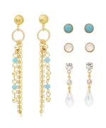 大好きな、ターコイズピアスがセットになってるなんて買うしかない!って感じです(笑) 揺れるターコイズピアスは、長すぎす短すぎすの程よい長さで、とても綺麗にゆれます。 セットのピアス達と重ね着けすると、スッキリまとまり良い感じ。 極小のシールの貼り替えは大変だけど、貼るととっても格好良いですね!