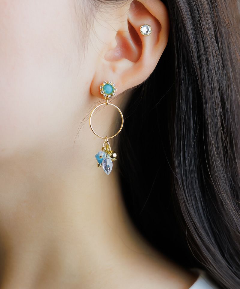ターコイズのピアスがとても可愛いです。 セット全部着けたら、とっても素敵に仕上がりました。