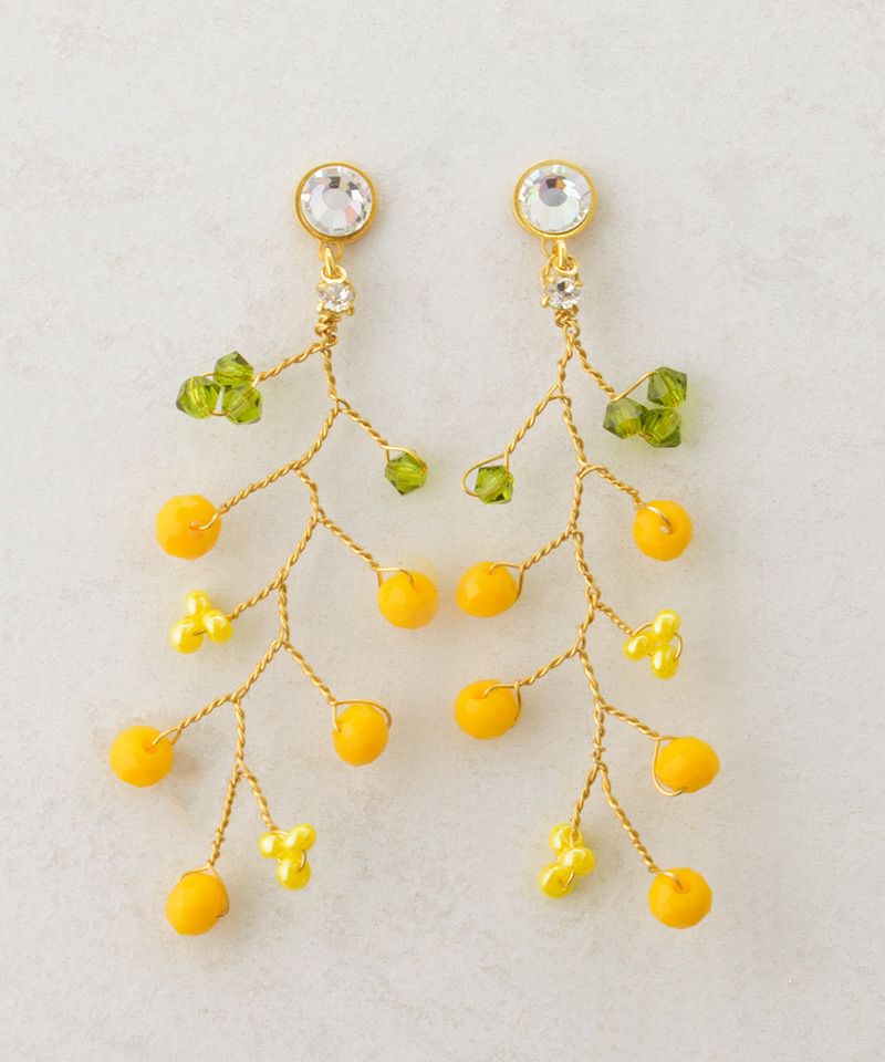 イエローやグリーンのビーズでミモザらしい明るい耳元に♪