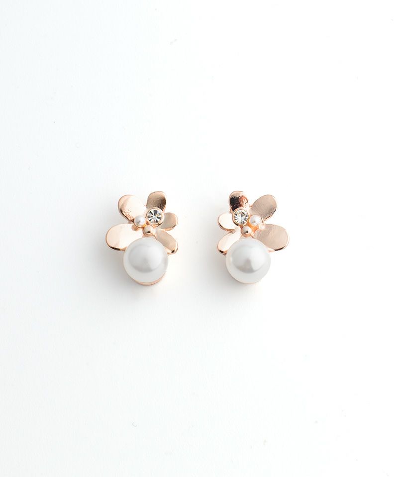 【ノンニッケル】一粒パール×ニュアンスメタルフラワー