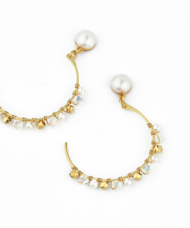 パール・ビーズ・メタルの異なる素材がミックスされていて可愛いも大人っぽいも叶えてくれるデザインです。