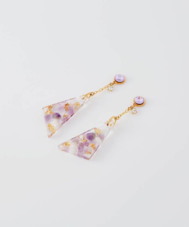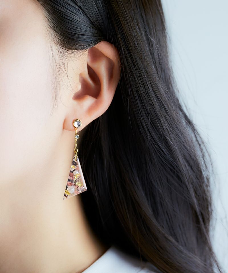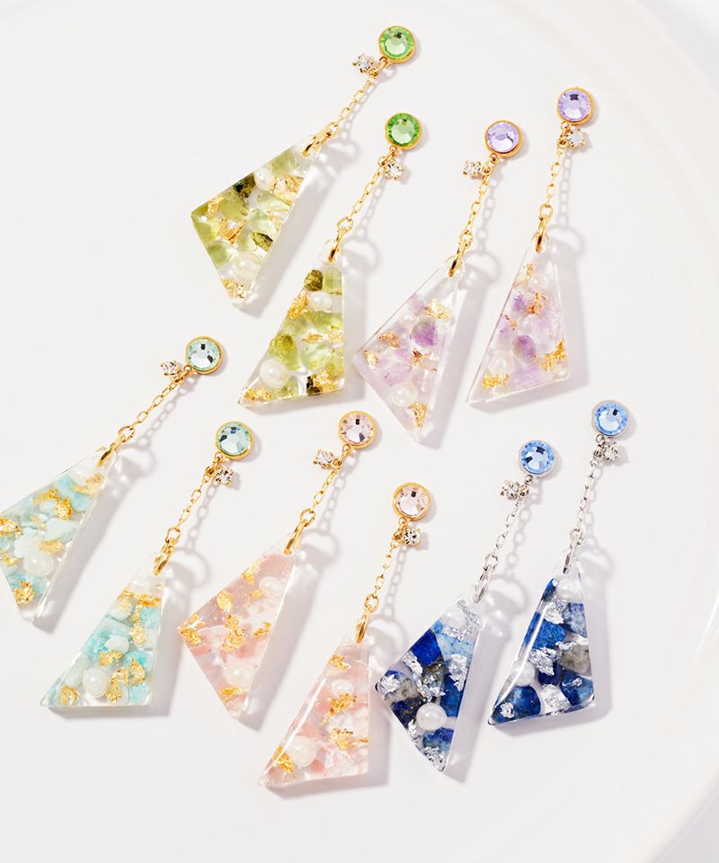 天然石のきらめきを閉じ込めた、三角ドロップピアス。