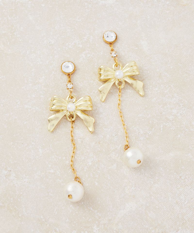 ゴールドのリボンモチーフにコットンパールをあしらい、