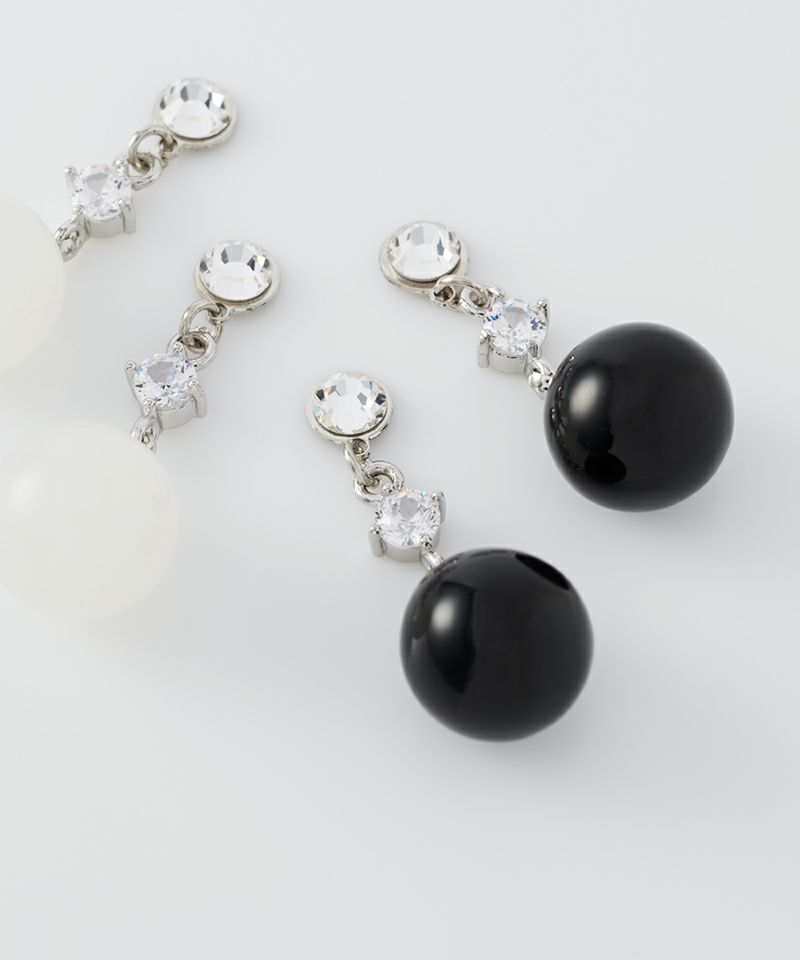 大きめの黒と白のパールが存在感を放つ、シンプルながらも上品なデザインのアイテム。