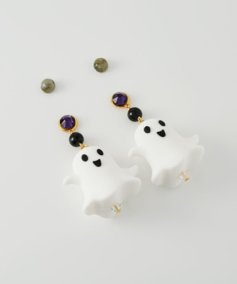 ころんと大きな白いオバケが耳元で揺れる遊び心たっぷりのピアスです♪