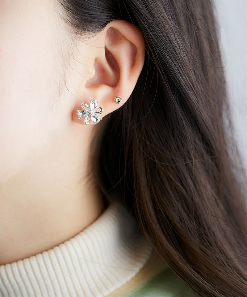 「お花」ピアスは1つの為、一緒に使用するのに「パールとクリスタルのイヤーカフ風」を購入しました アシンメトリーなデザインになっていい感じです お花ピアスも、大きすぎず、でも存在感がありとても素敵でした