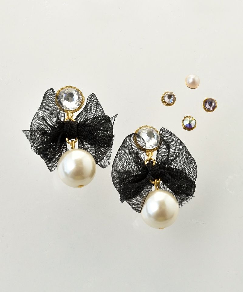 やはり大きなブラックのリボンが大ぶりパールとマッチして可愛らしさが倍増しています。耳元のビジューも豪華ですし、華やかな装いにしてくれます♪