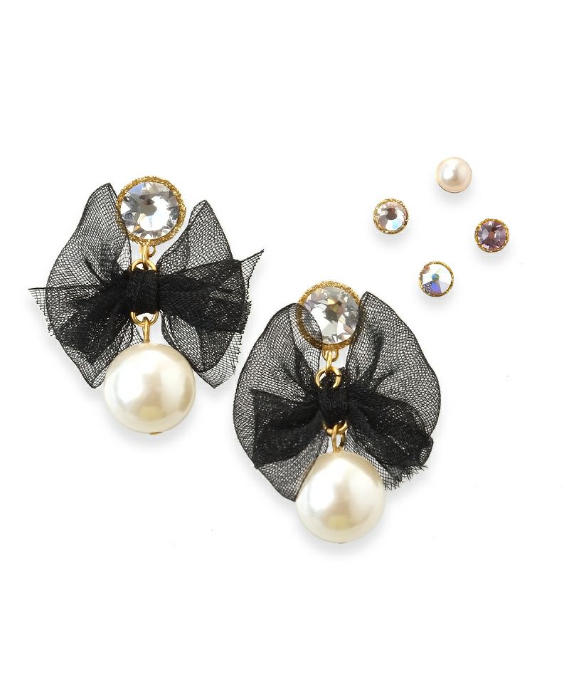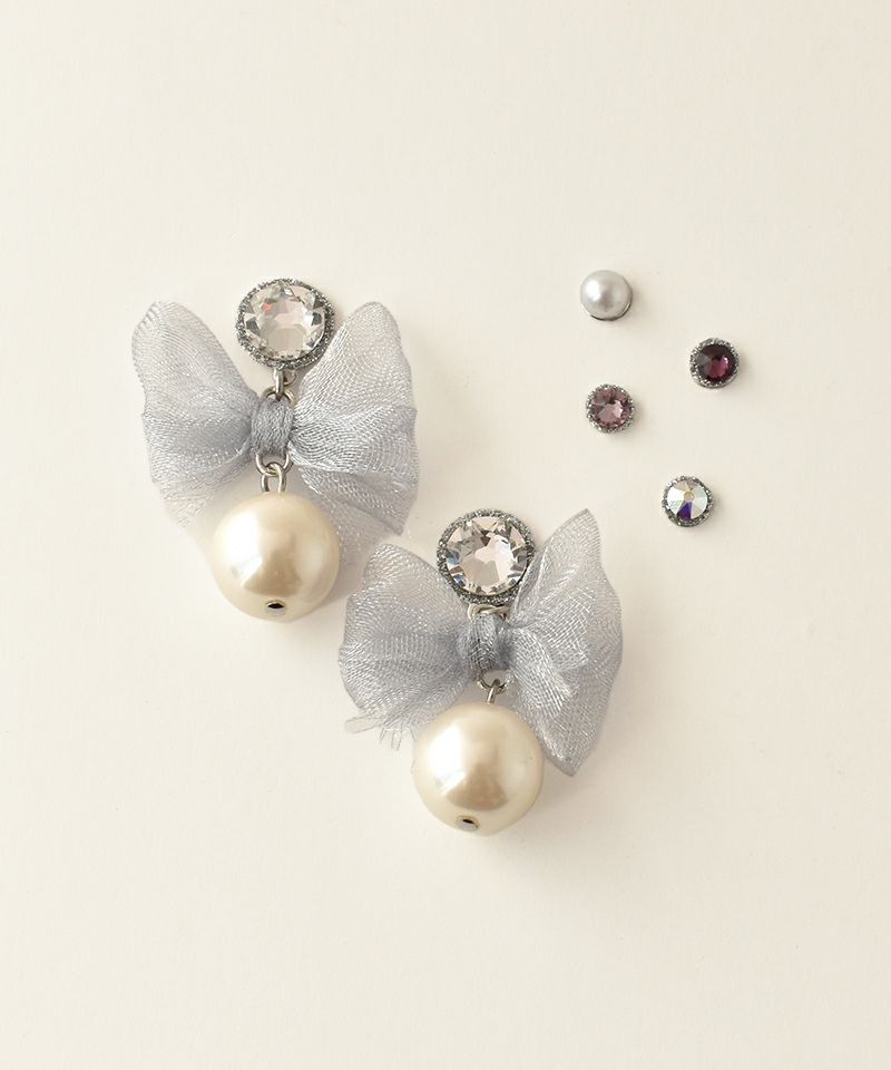 リボンがとっても可愛いです♡ セットなので小さなピアスも付いてきてお得な感じがします。