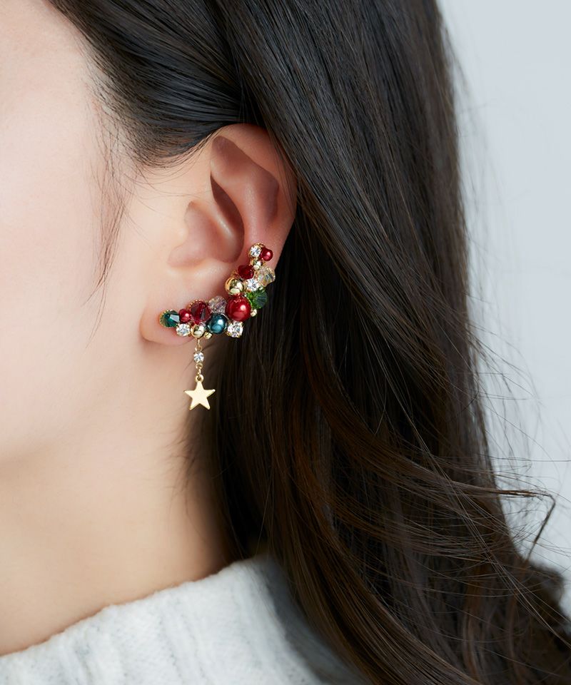 耳元で光を受けて輝く、冬の夜を彩るアイテムです。
