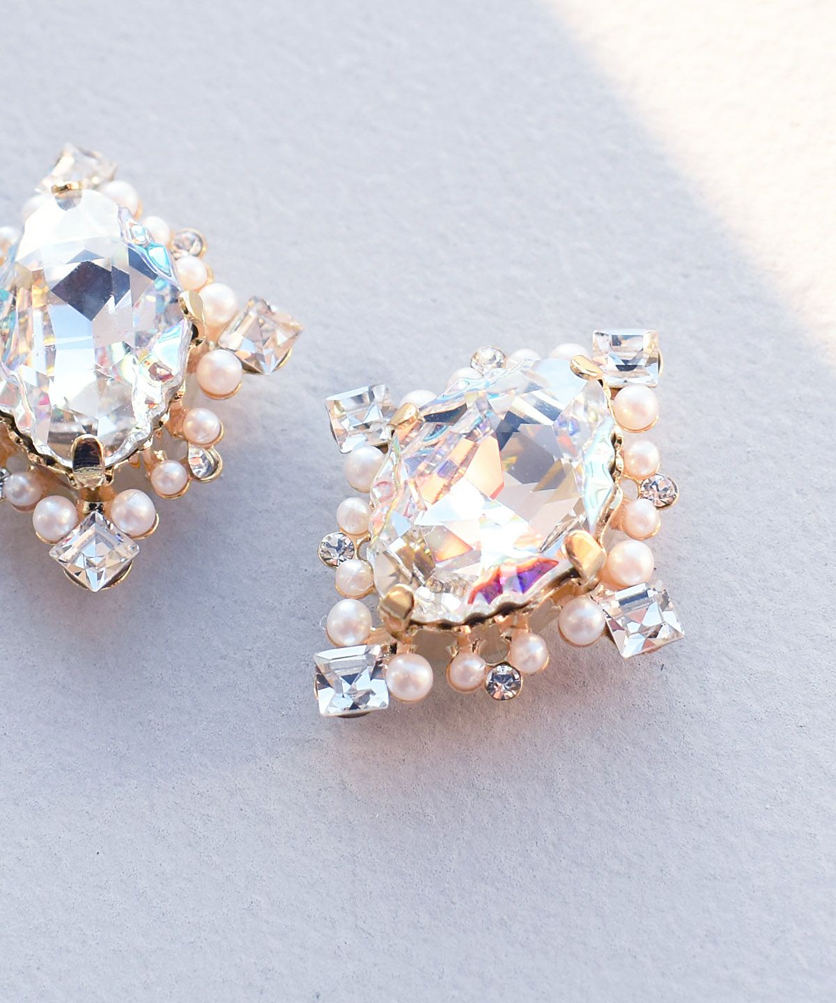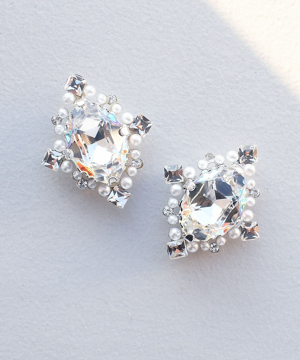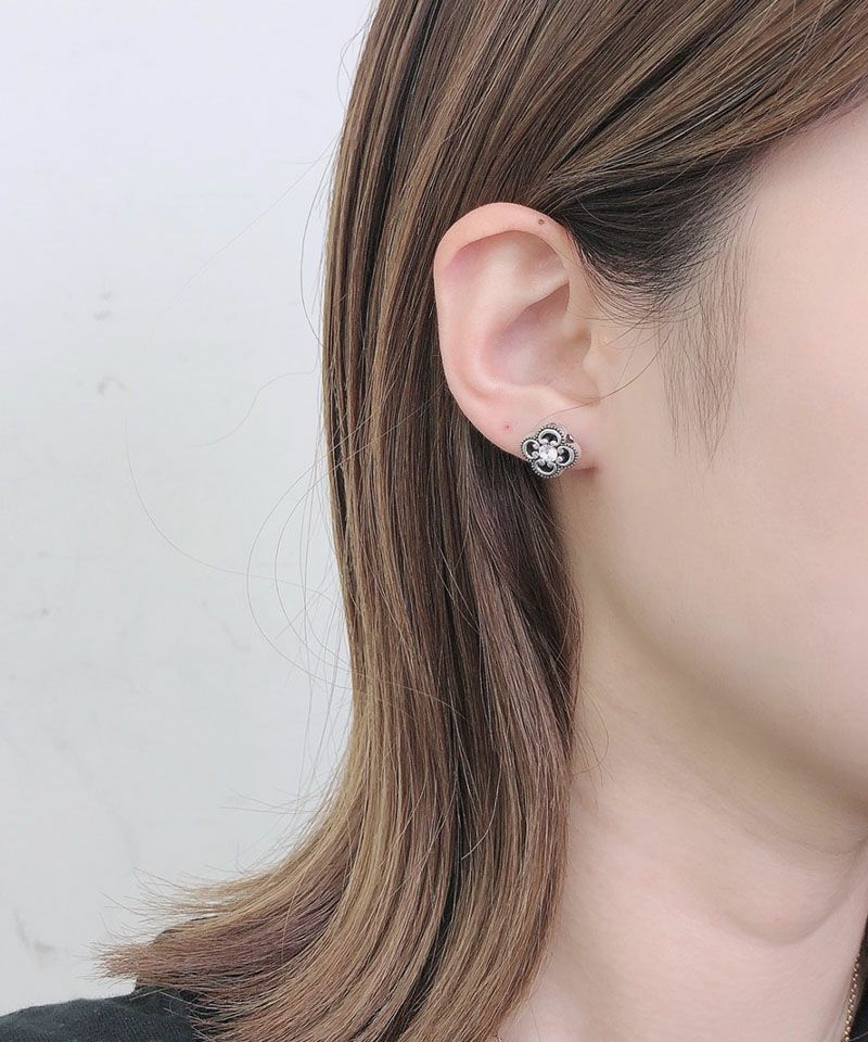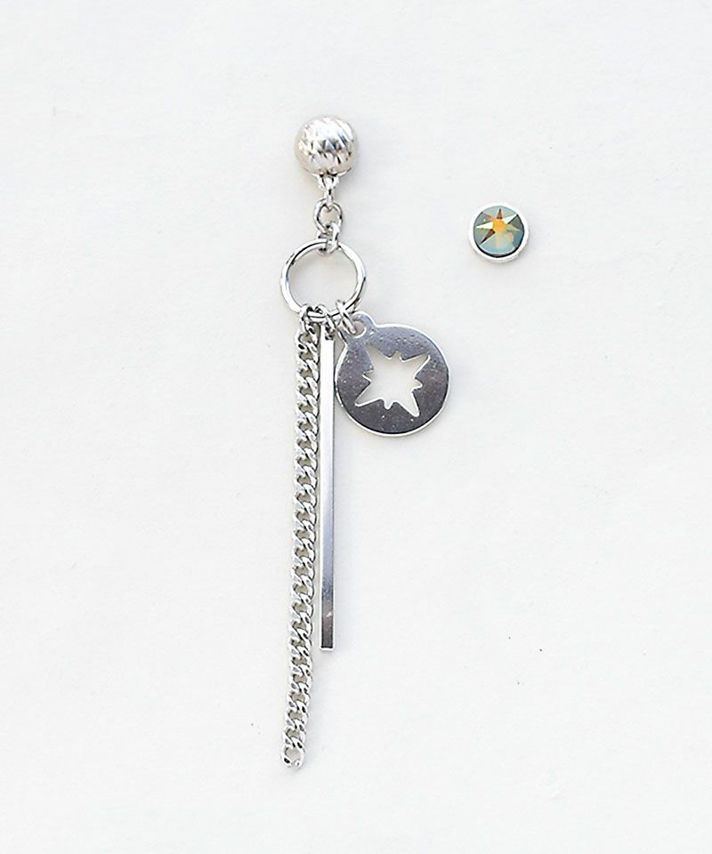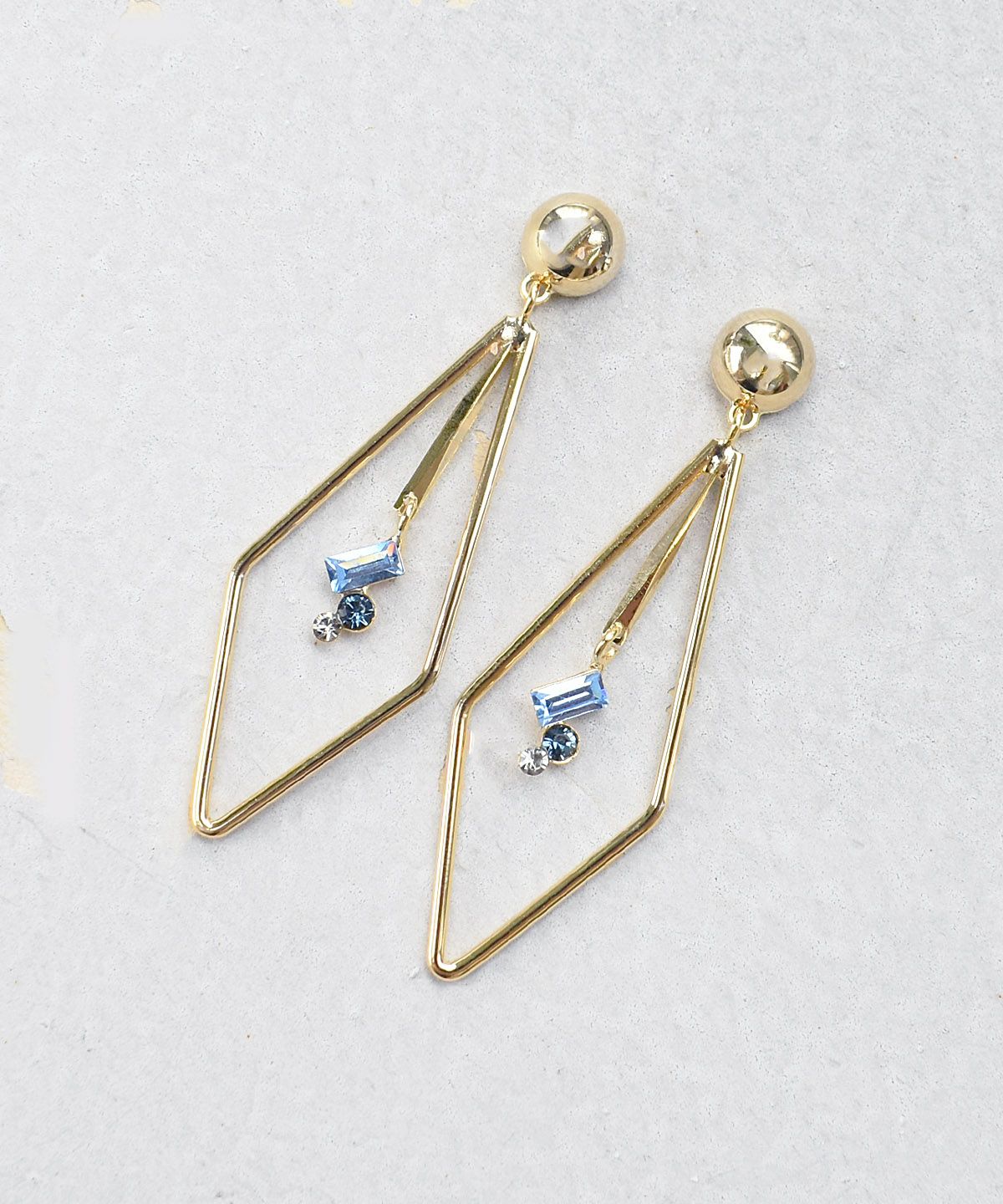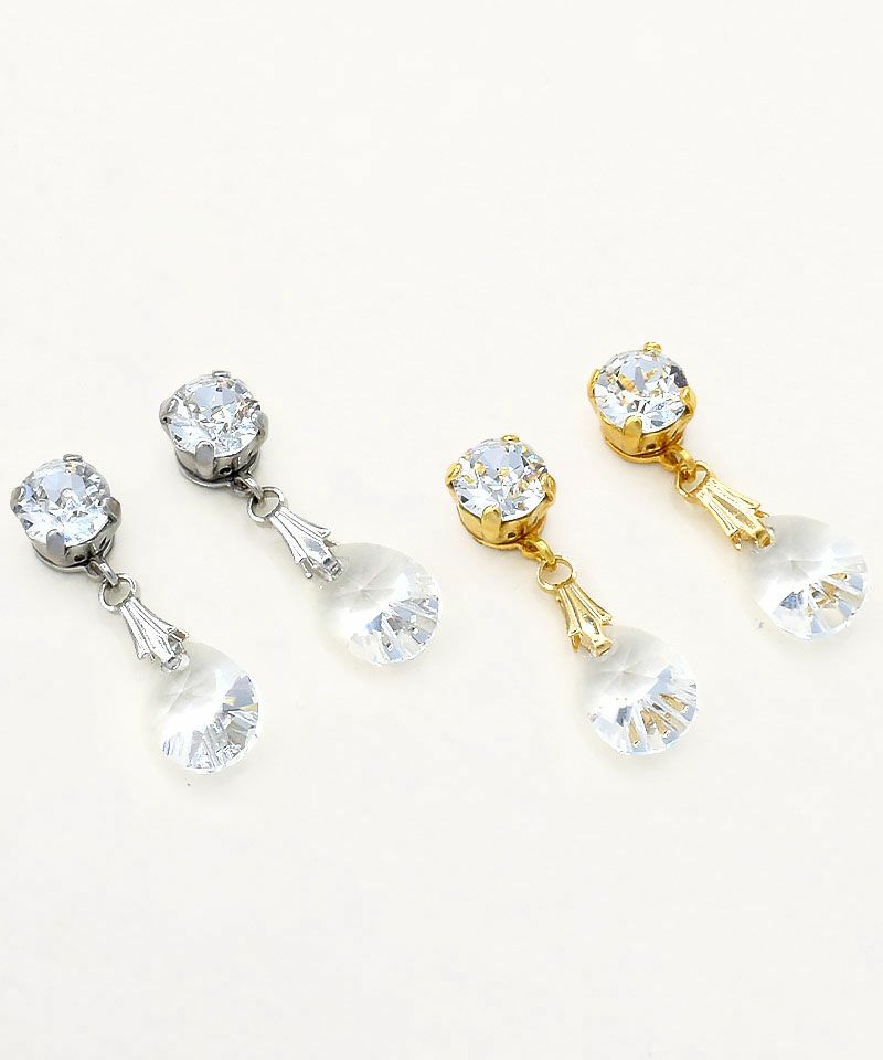【ノンニッケル】連なる4粒ストーンとドロップクリスタル