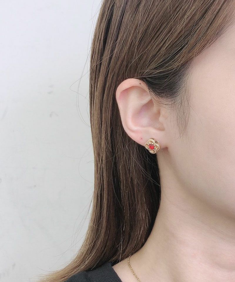 【ノンニッケル】プチハートの揺れるガーリーピアス