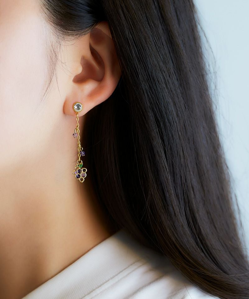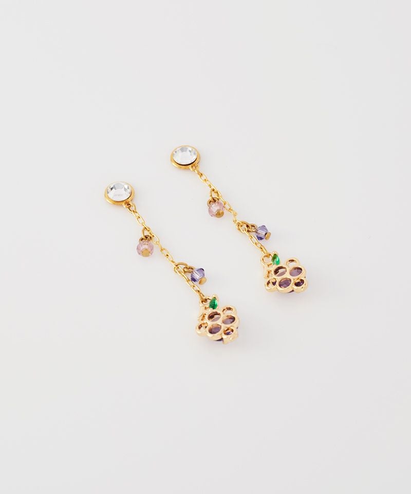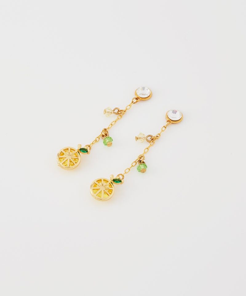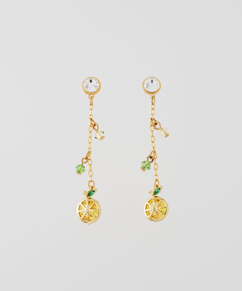 可愛いレモンとブドウがシャラシャラ揺れるジューシーでポップなロングピアス♪