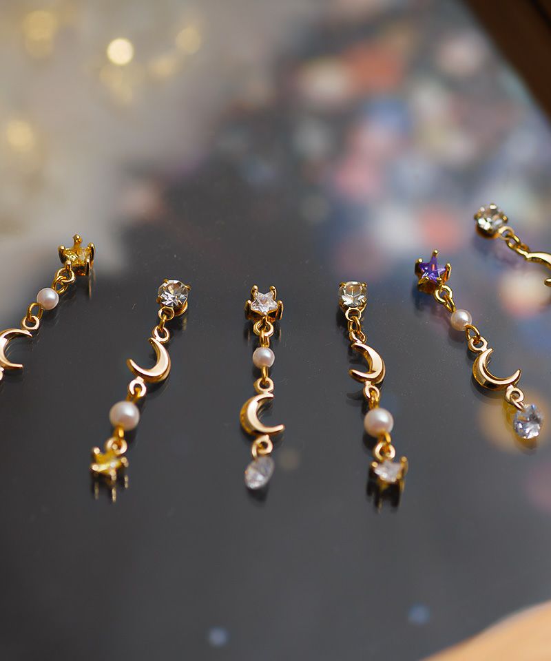 大人気のスター×ムーンモチーフのアシンメトリーデザイン。