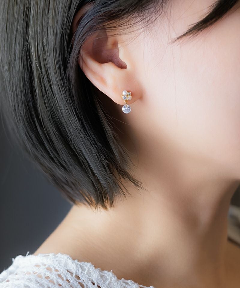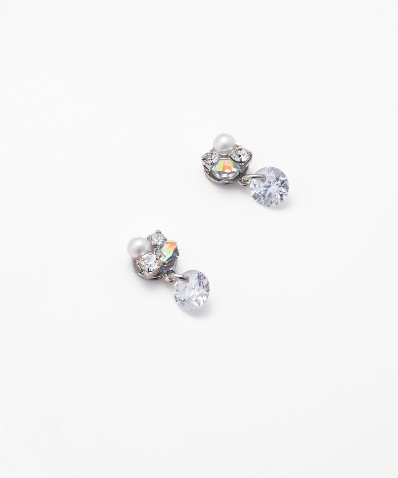 ビジューの下でキュービックジルコニアが可憐に揺れて、控えめながら華やかな印象をあたえます♪
