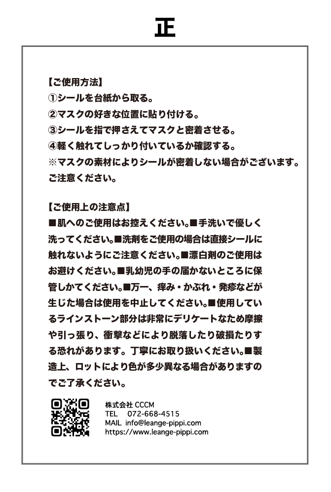 『マスクジュエリーPiPPi』のご使用方法、ご使用上の注意点の内容におきまして、誤った表記のものが含まれていることが