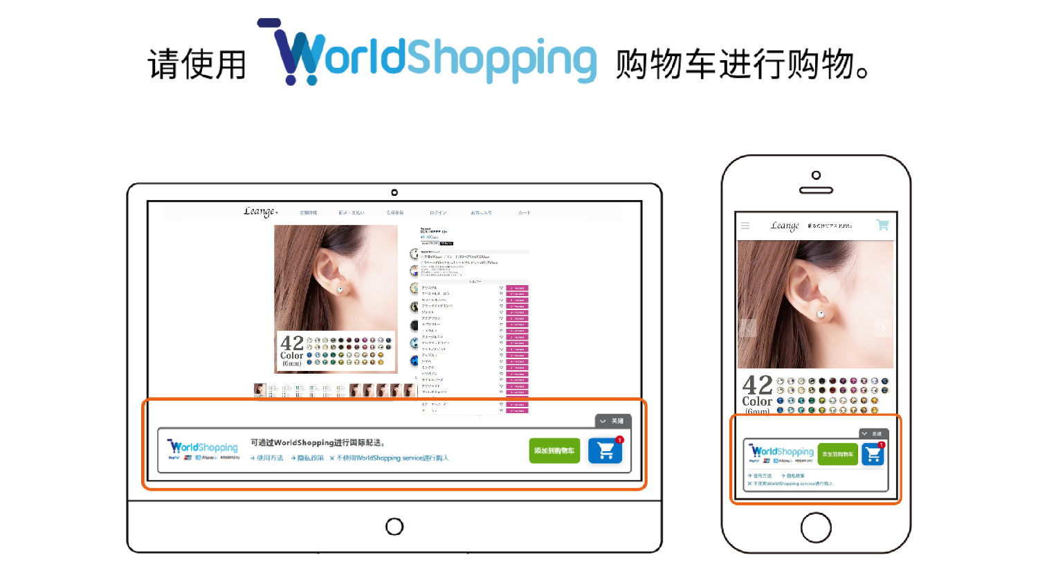点击“添加到购物车”的“WorldShopping旗帜广告,只有在您国家可以购买的商品才会出现在购物车中,继续购买您喜欢的商品。