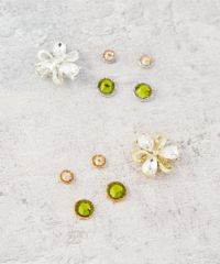 「お花」ピアスは1つの為、一緒に使用するのに「パールとクリスタルのイヤーカフ風」を購入しました アシンメトリーなデザインになっていい感じです お花ピアスも、大きすぎず、でも存在感がありとても素敵でした