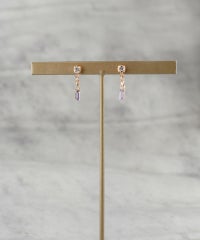 耳元も揺れるチャームもストーンがいっぱいで素敵です。 フープの右と左の長さが微妙に違って、着けると少し違うフォルムのフープになるのが面白いです。
