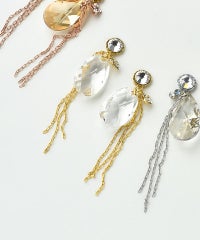 大粒のスワロフスキーが、めちゃくちゃ綺麗で華奢なチェーンが揺れてとても素敵なピアスです。