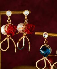 リボンのワイヤーを挟んでカラーキューブとパールが揺れて素敵です。