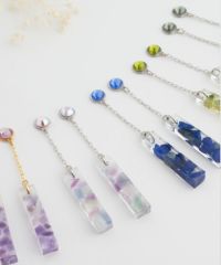 パウダーブルーを購入しました。 使っている石はおそらくフローライトなので、色味がまばらなのにバランスが取れていていいですね。パステル調でぱっきりした色ではないので、一年を通して着用しやすいと思います。 -